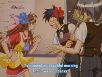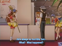 Synopsis: Yususke (from the first Pia Carrot series) returns as the manager with a whole new cast. So the new male lead is Koji. Despite being late after an "accident," Koji manages to get the job as the Carrot's waiter because he's very persistant. Included within the set are Azusa (the female lead who hates Koji for his perversion), Ryoko (the manager who's sweet on Koji by working him very hard), Aoi (the token alcoholic), Jun (the secret-hiding waitor), and Mina (Azusa's cute little sister).